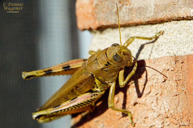I wonder what an insect sees looking through its compound eyes. And how does the insect's mind process all that information? This grasshopper looks at us on this early evening capture. It appears he needs a bit of a shave!