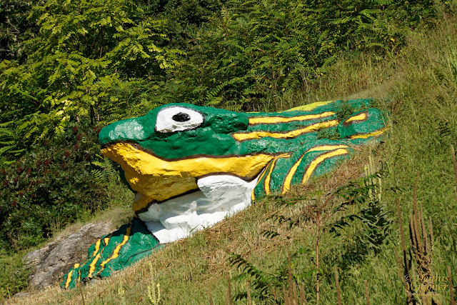 One (of many) tourist artifacts along the historic Route 66 is this frog face painted on a rock out-cropping on the side of hill just east of Waynesville, Missouri. Of course, the tourist inside me could not help but to stop and get a couple of images of this landmark!