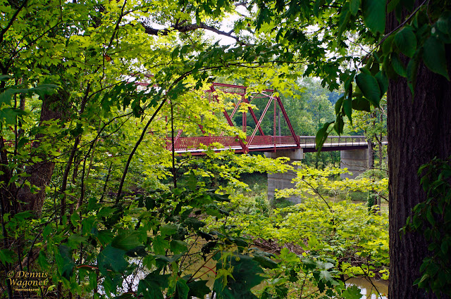 It rained off and on all day at the Covered Bridge festival. This is the big bridge at Bridgeton. The water was running very fast that day!